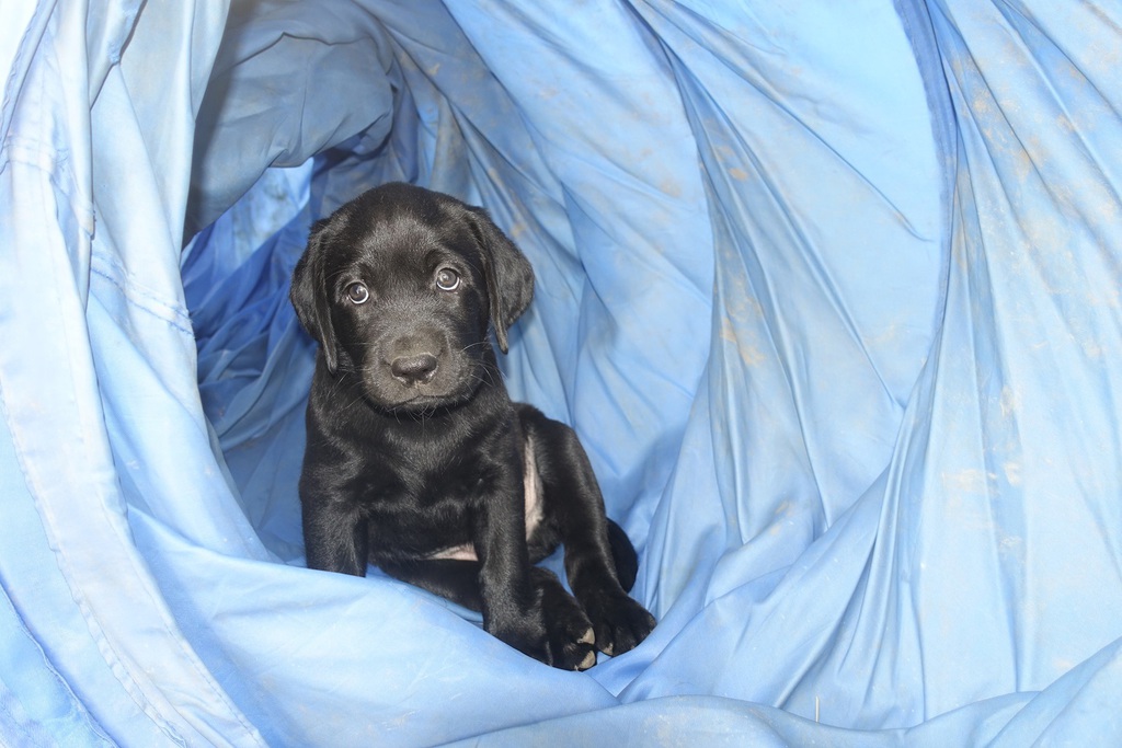 Der 30 Monate alte Rüde zeigt sich heute sehr aktiv und freundlich und aufgeschlossen gegenüber Menschen, den Parcour durchläuft er sicher und unerschrocken, Beute läuft er schnell hinterher und trägt sie zügig zu. |